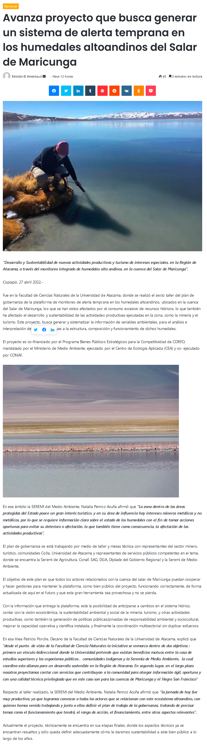 Proyecto busca generar sistema de alerta temprana en humedales altoandinos en Salar de Maricunga - (El Chañarcillo)