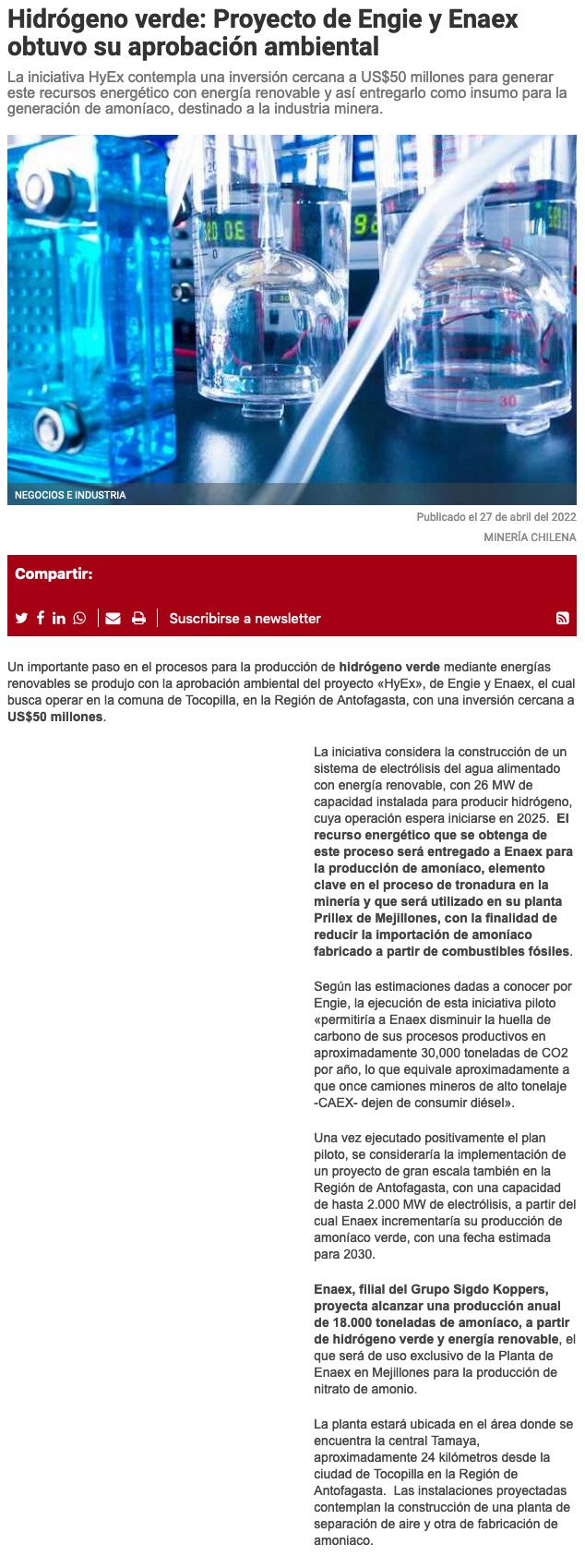 Engie obtiene aprobación ambiental para piloto industrial de hidrógeno verde en Antofagasta - (DF Online)