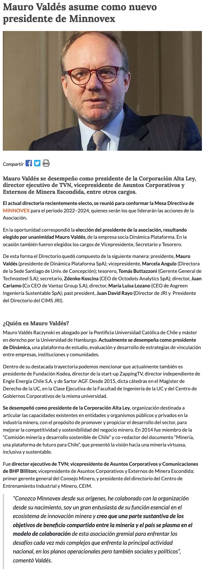 Mauro Valdés asume como nuevo presidente de Minnovex - (mch.cl)
