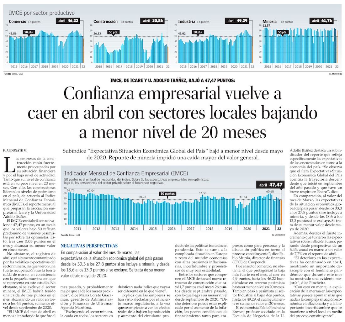 Un dispar abril en el mundo empresarial: el comercio perdió el optimismo y rubro financiero lo recuperó - (Diario Financiero)