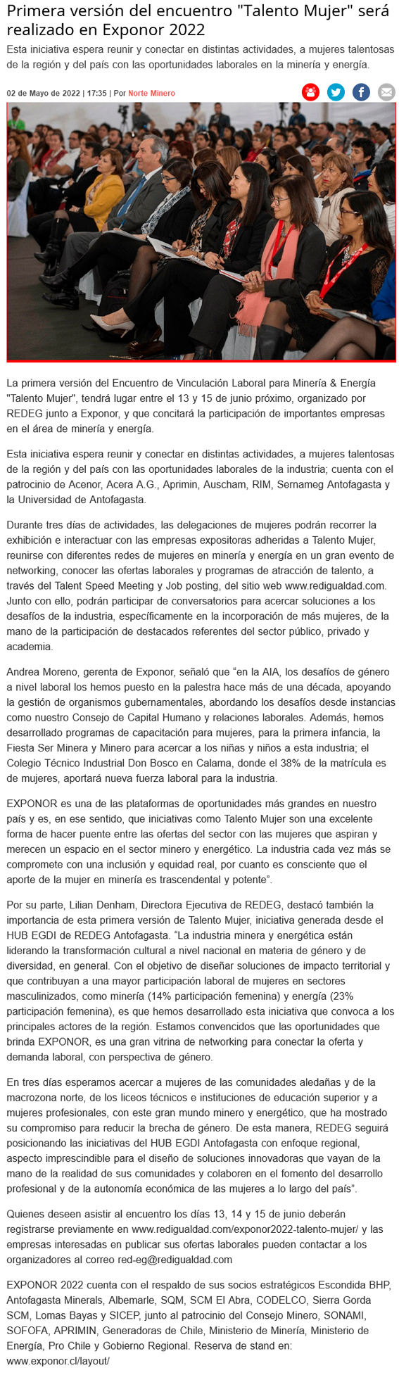 Primer encuentro de vinculación Talento Mujer en EXPONOR 2022 - (norteyenergia.cl)