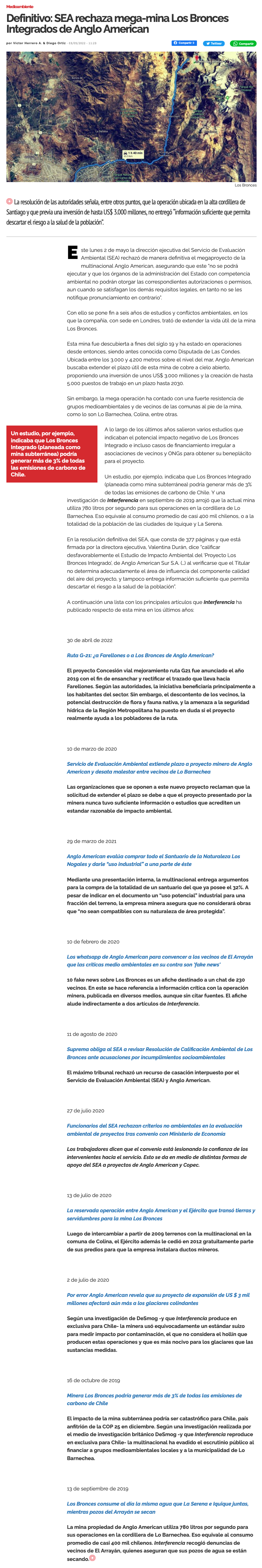 El revés de Anglo American tras negativa del SEA en proyecto Los Bronces por US$ 3.300 millones - (biobiochile online)