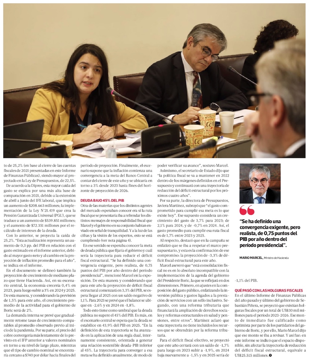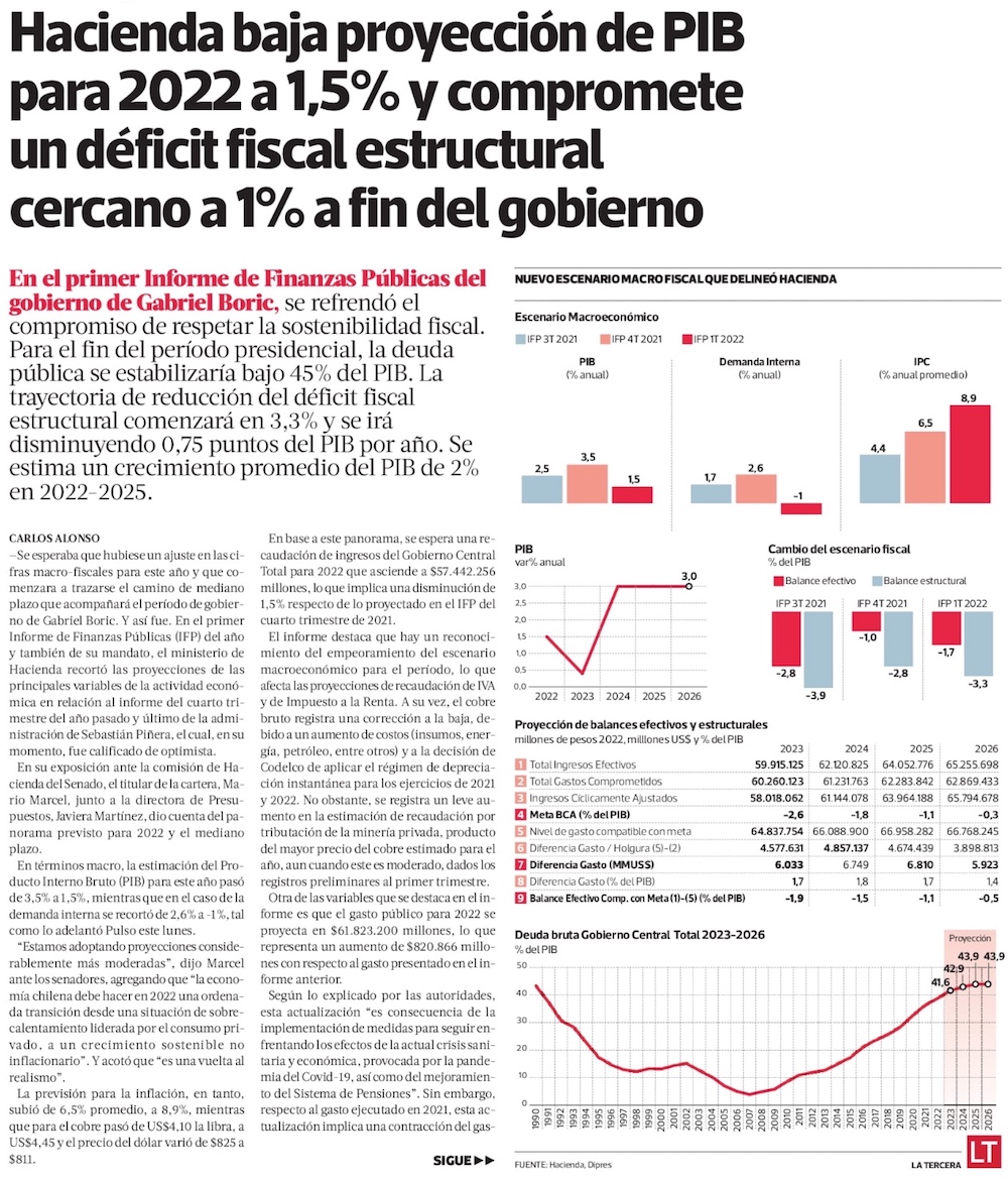 Hacienda asume dos años de freno económico: baja PIB para el año y se abre a escenario de nulo crecimiento en 2023 - (Diario Financiero)