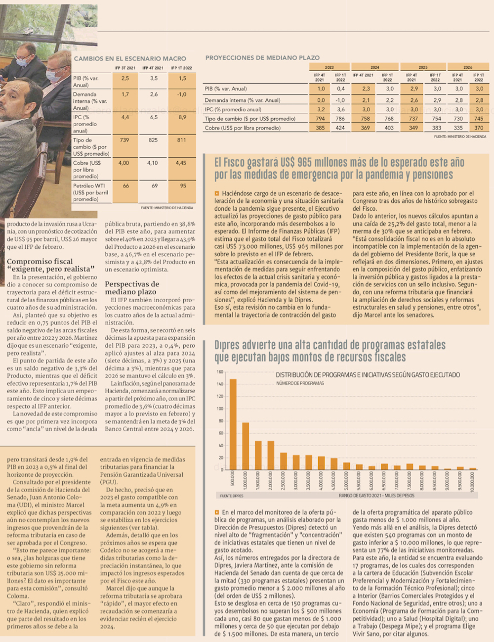Hacienda baja proyección de PIB para 2022 a 1,5% y compromete un déficit fiscal estructural cercano a 1% a fin del gobierno - (Pulso)