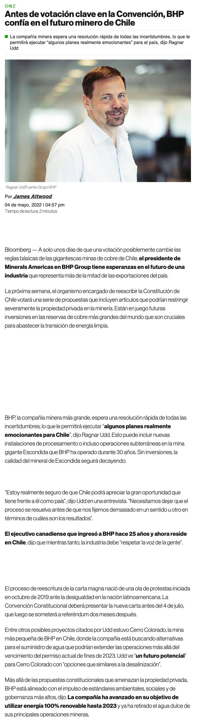 BHP se muestra confiado en proceso constitucional - (El Mercurio de Santiago)