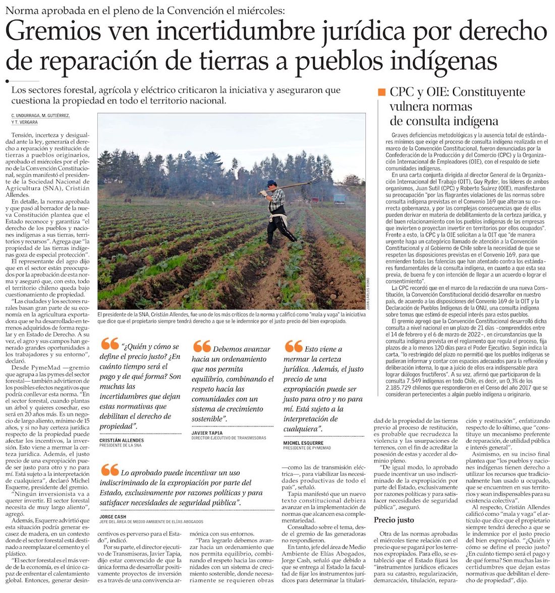 "Incerteza" y "tensión": gremios empresariales en alerta por restitución de tierras a pueblos indígenas que aprobó la CC - (Pulso)