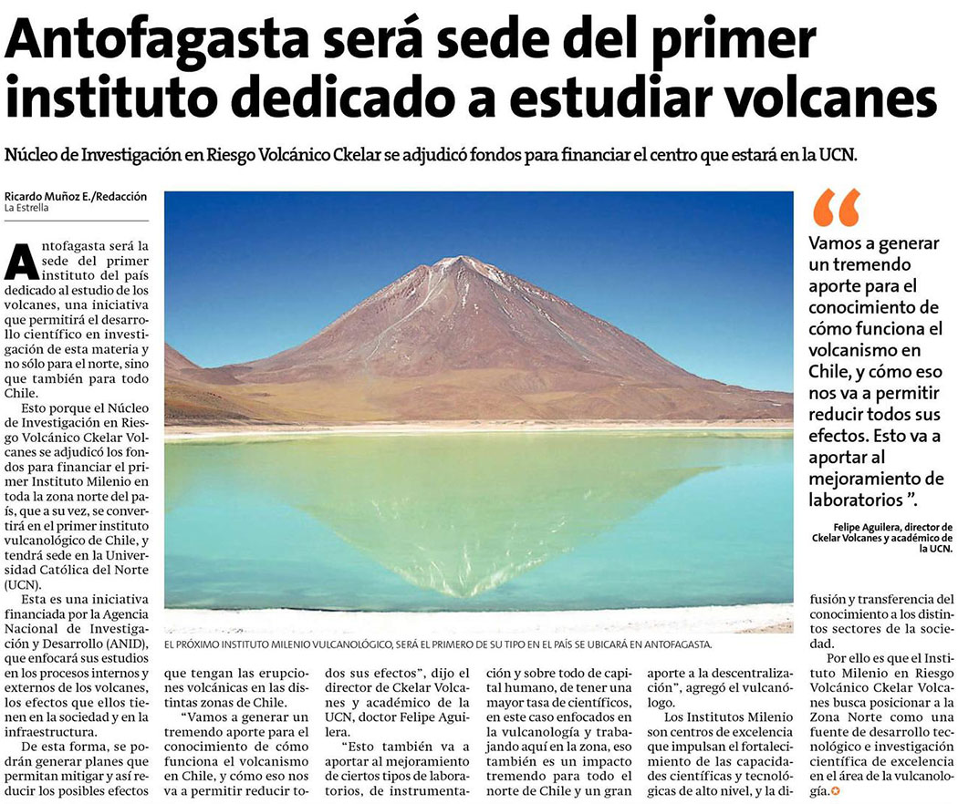 Con el objetivo de estudiar los volcanes la UCN implementará primer Instituto Milenio del Norte - (El Mercurio de Antofagasta)