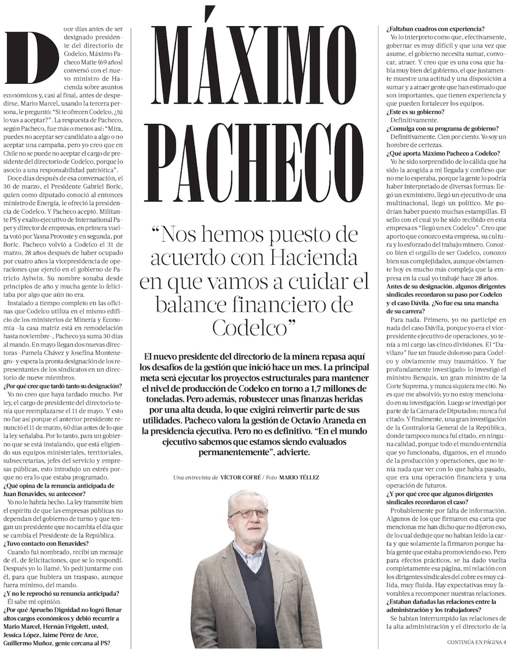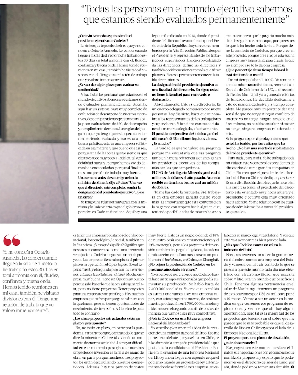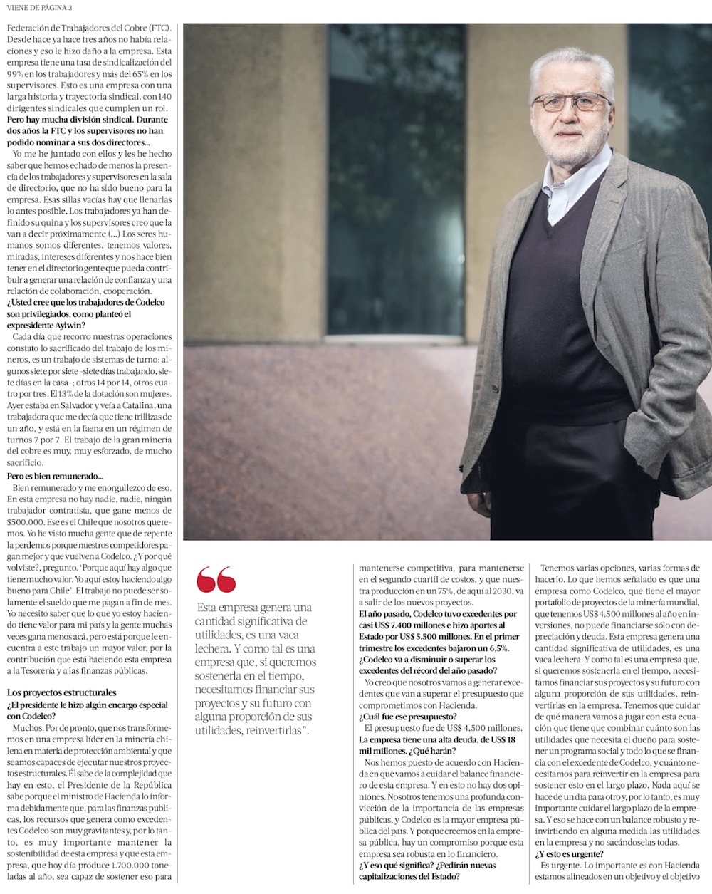 Presidente del directorio de Codelco revela acuerdo con Hacienda para "cuidar el balance financiero de esta empresa" - (El Mostrador)