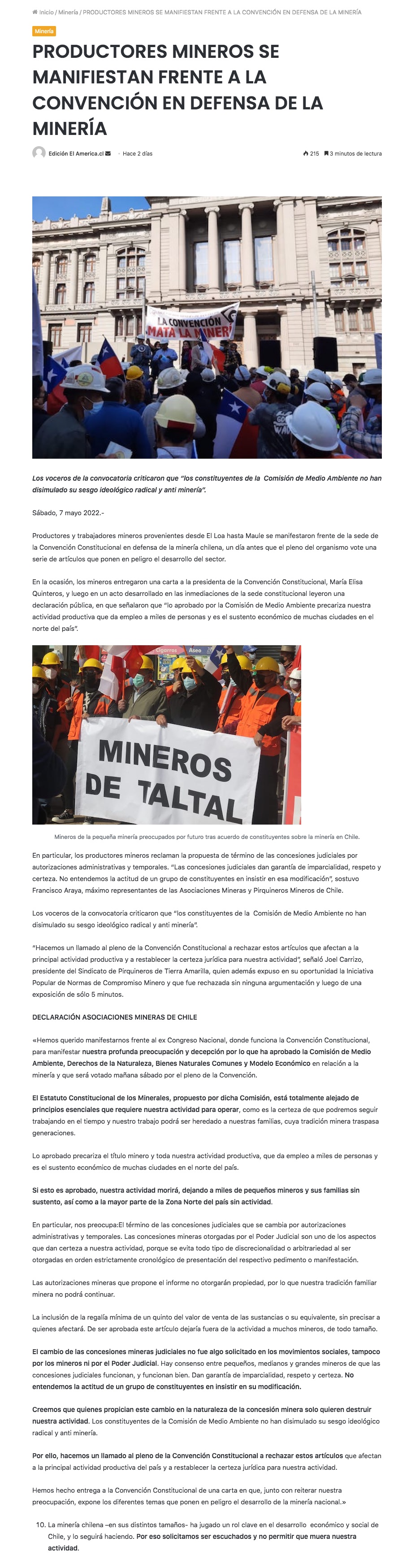 Productores mineros protestan ante Convención Constitucional por cambios en normativa - (soyantofagasta)