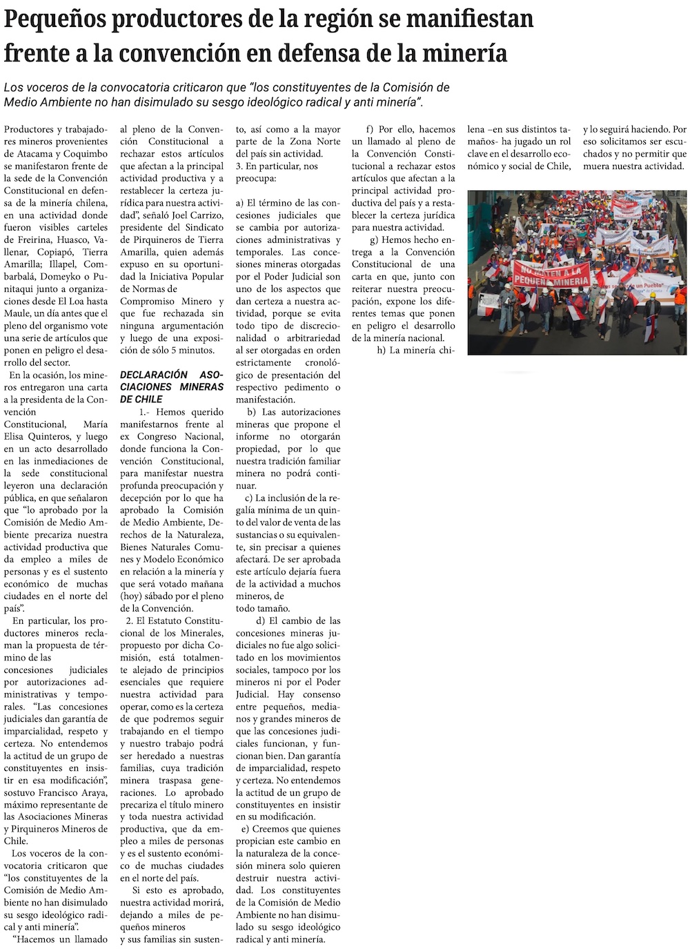 Pequeños productores de la región se manifiestan frente a la Convención en defensa de la minería - (tierramarillano.cl)