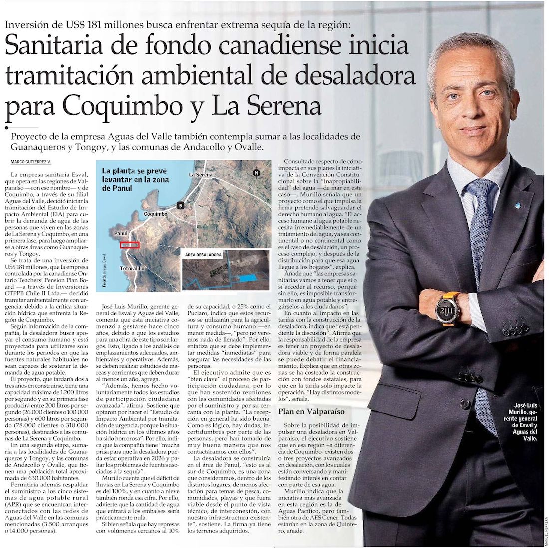Planta Desaladora de Aguas del Valle ingresa al SEA con solicitud de urgencia - (El Día)