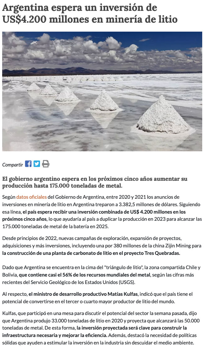 Argentina alista un gran salto con el litio: Expertos aseguran que podría quitarle piso a Chile - (biobiochile online)