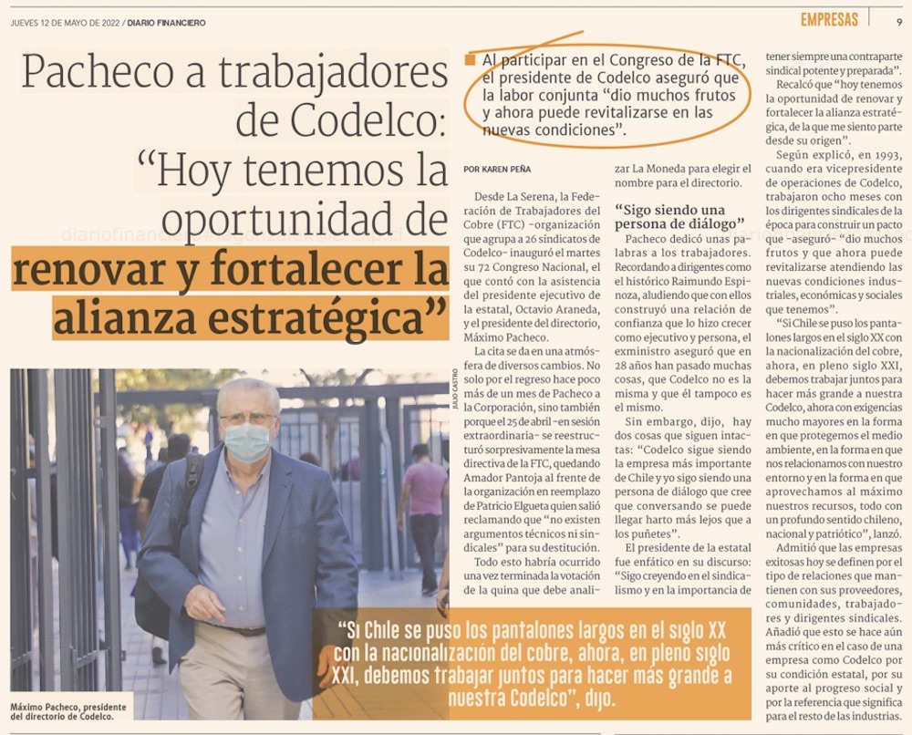 Presidente del directorio de Codelco visitó la División Ventanas - (El Mercurio de Valparaíso)