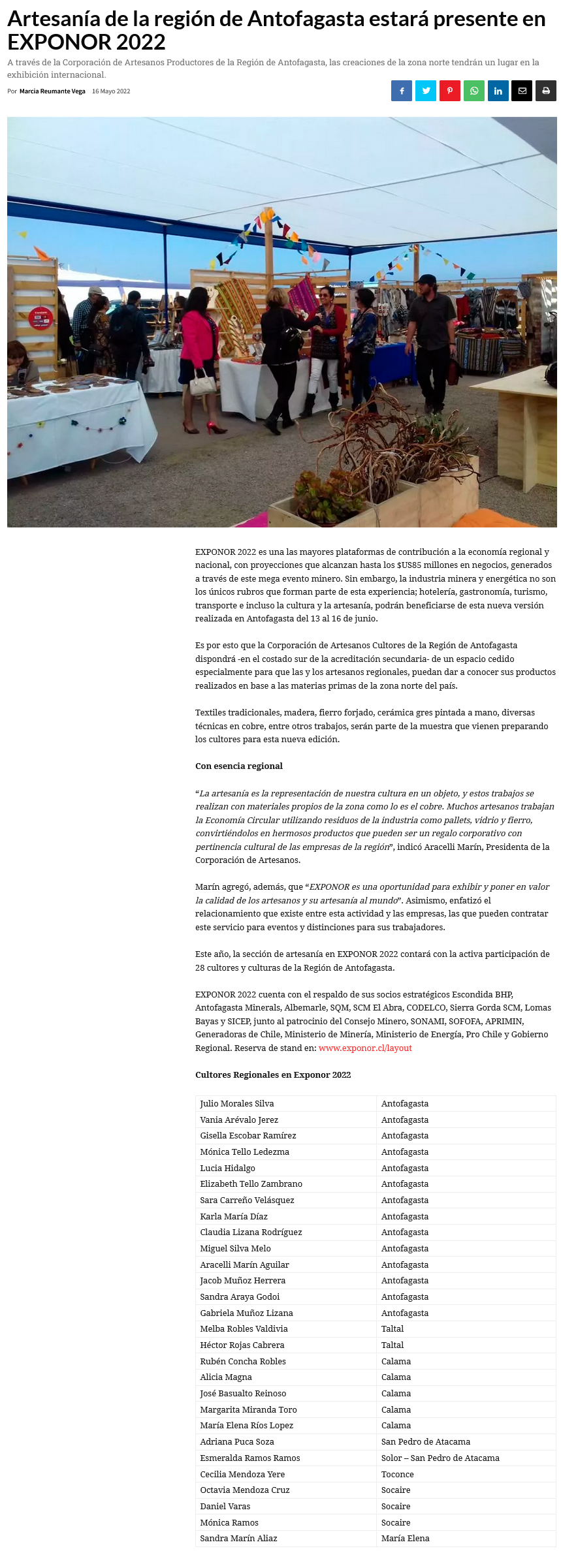 Artesanía regional estará presente en EXPONOR 2022 - (reporteminero)