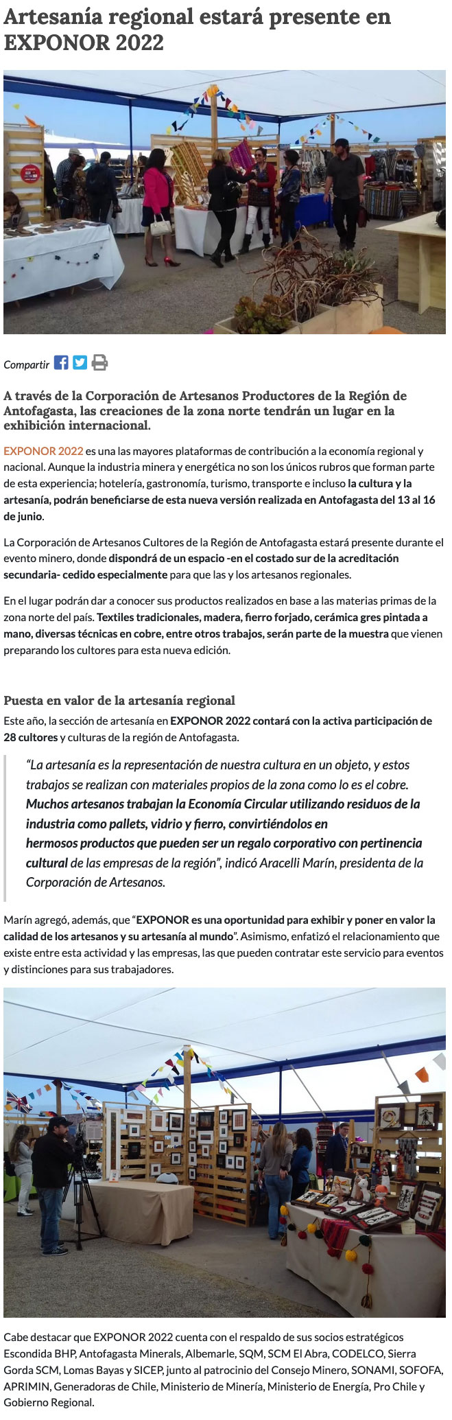 Artesanía de la región de Antofagasta estará presente en EXPONOR 2022 - (norteyenergia.cl)