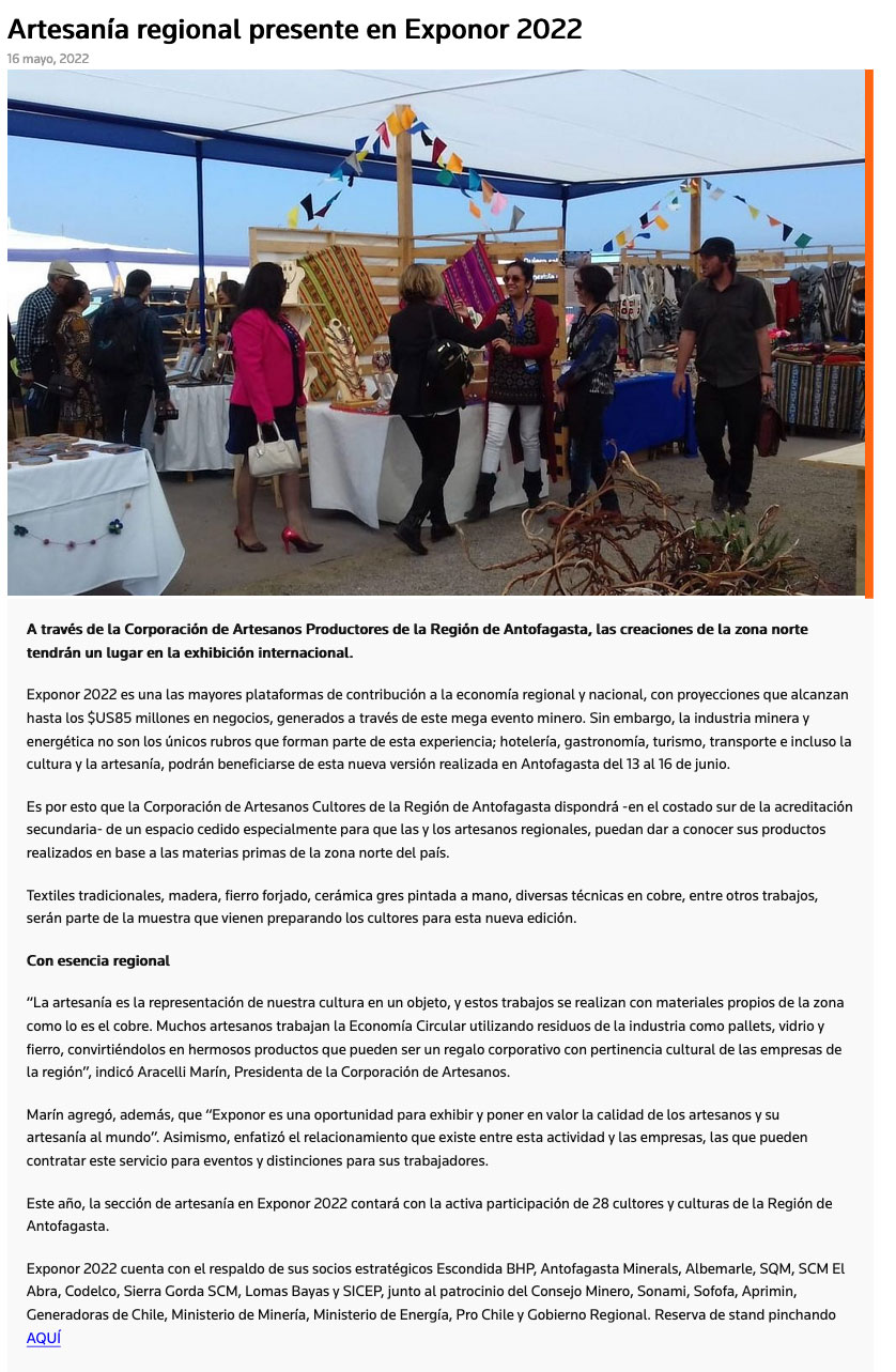 Artesanía regional estará presente en EXPONOR 2022 - (reporteminero)