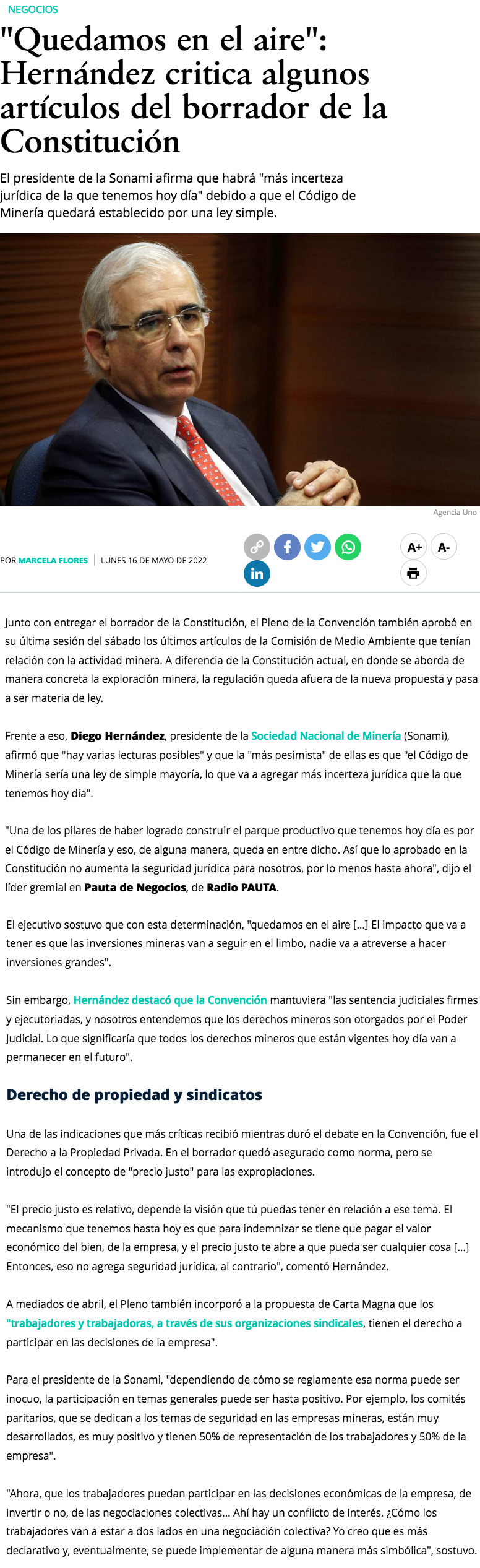 Sonami y balance del trabajo de la CC tras entrega de borrador: "No fueron rigurosos, no entienden qué es la minería" - (emol)