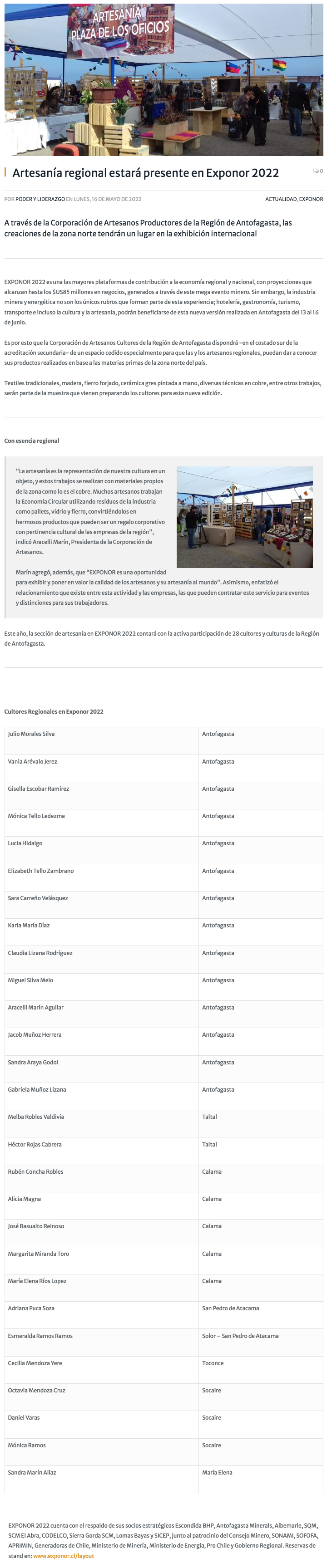 Pequeños artesanos cultores de Antofagasta exhibirán sus productos en feria Exponor 2022 - (biobiochile online)
