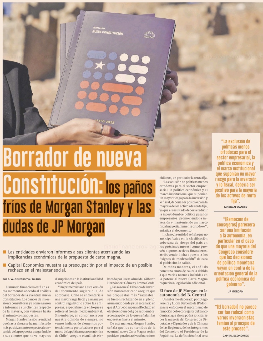 Nueva Constitución: Morgan Stanley no ve efectos "disruptivos" en la economía, pero JP Morgan advierte sobre el BC y la minería - (Pulso)