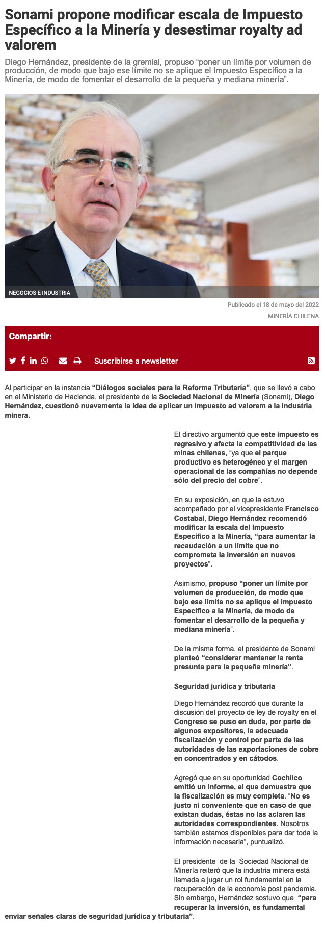 Gremio de la minería pide que la próxima reforma tributaria no afecte a la inversión y a las empresas de menor tamaño - (Pulso Online)