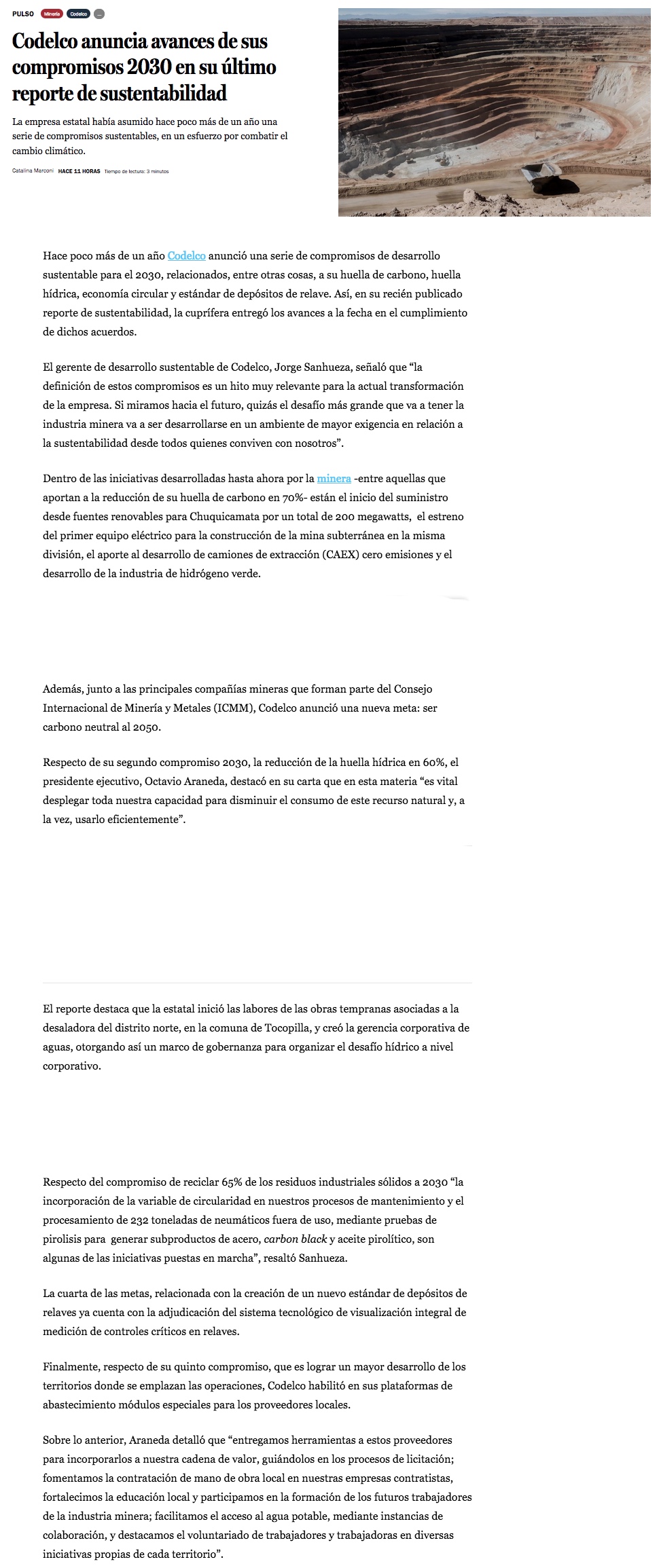Presidente de Codelco anuncia que se zanjará el futuro de la división Ventanas - (El Mercurio de Santiago)