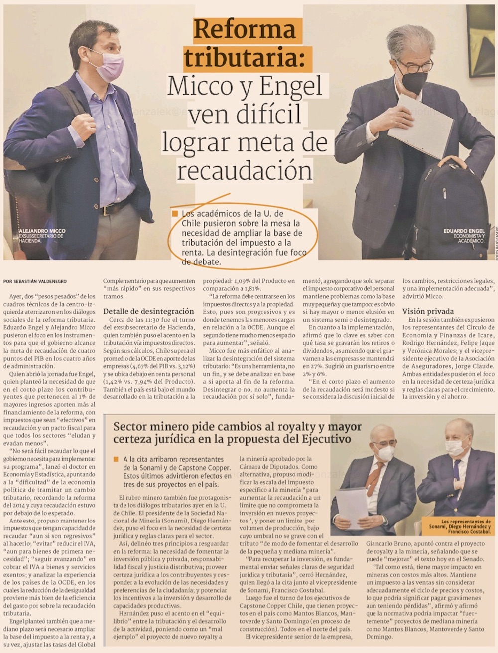 Micco y Engel apuntan a que en el futuro las personas de ingresos medios eleven carga tributaria - (El Mercurio de Santiago)
