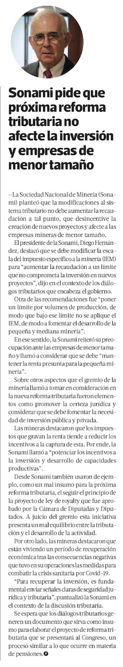Gremio de la minería pide que la próxima reforma tributaria no afecte a la inversión y a las empresas de menor tamaño - (Pulso Online)