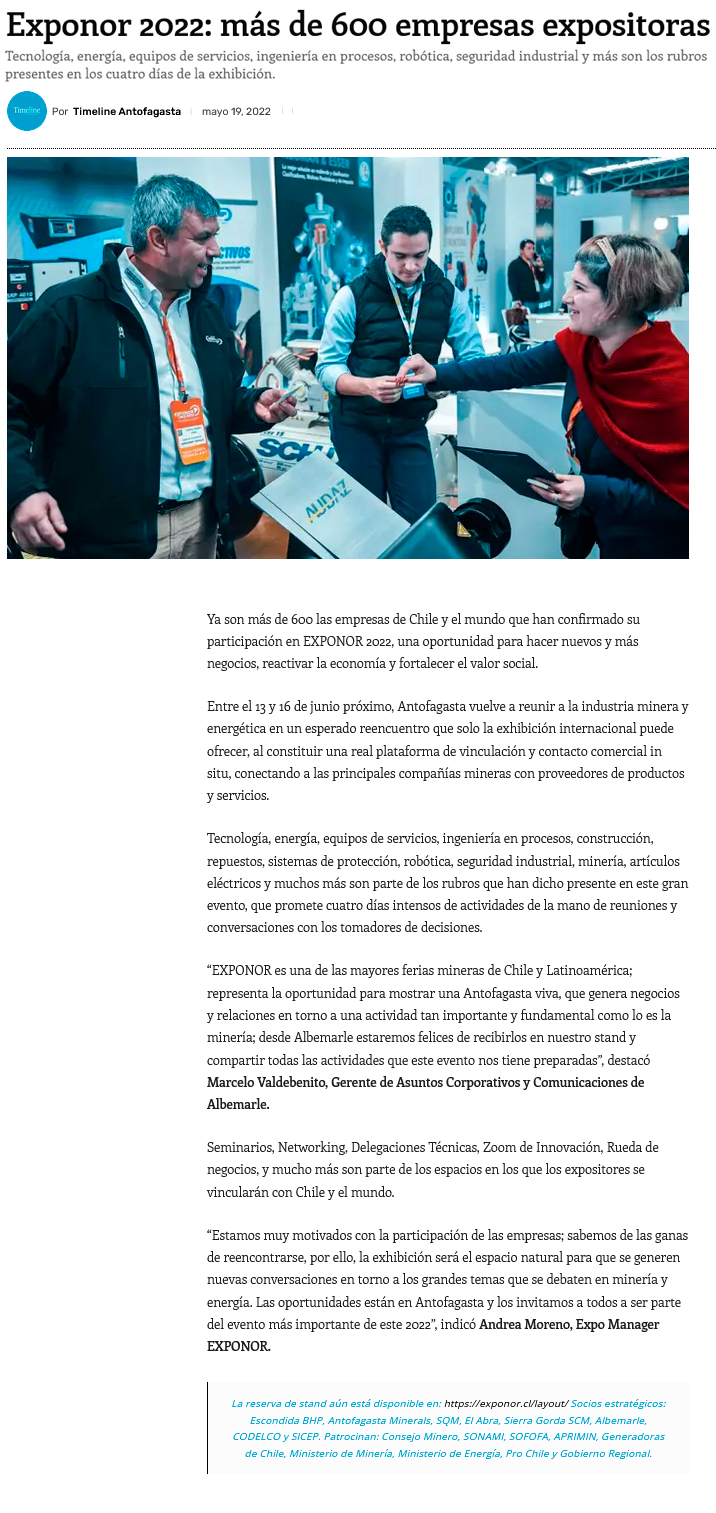 Más de 600 empresas expositoras ya tienen stand en Exponor 2022 - (norteyenergia.cl)