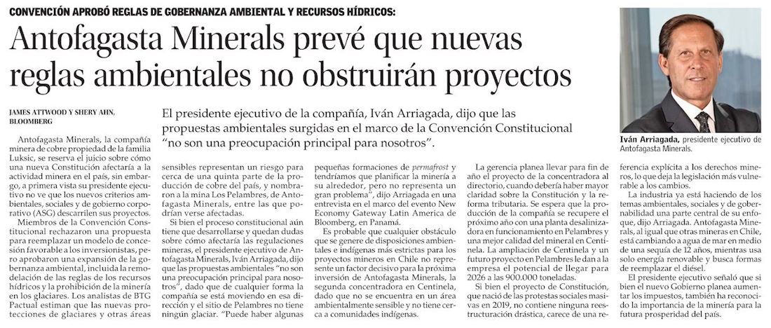Nueva Constitución: Minera del grupo Luksic prevé que nuevas reglas de ASG no obstruirán sus proyectos - (Pulso Online)