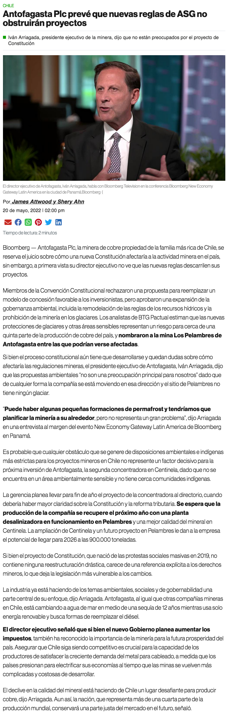 Nueva Constitución: Minera del grupo Luksic prevé que nuevas reglas de ASG no obstruirán sus proyectos - (Pulso Online)