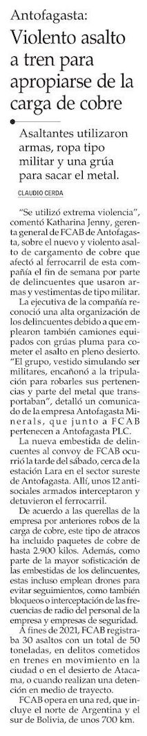 Con armamento y vestimenta militar asaltan el Ferrocarril - (El Mercurio de Antofagasta)