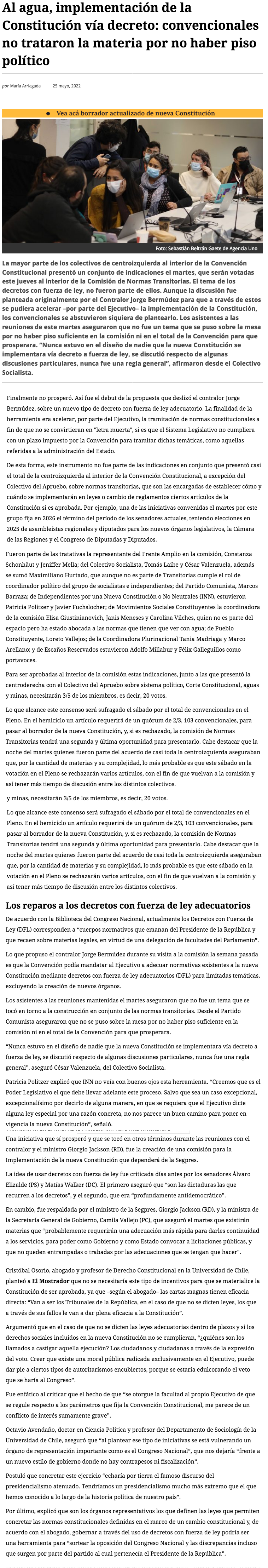 Normas transitorias: Convención impone sus tiempos al Poder Legislativo y propone dictar leyes sin que el Congreso las apruebe - (La Tercera)
