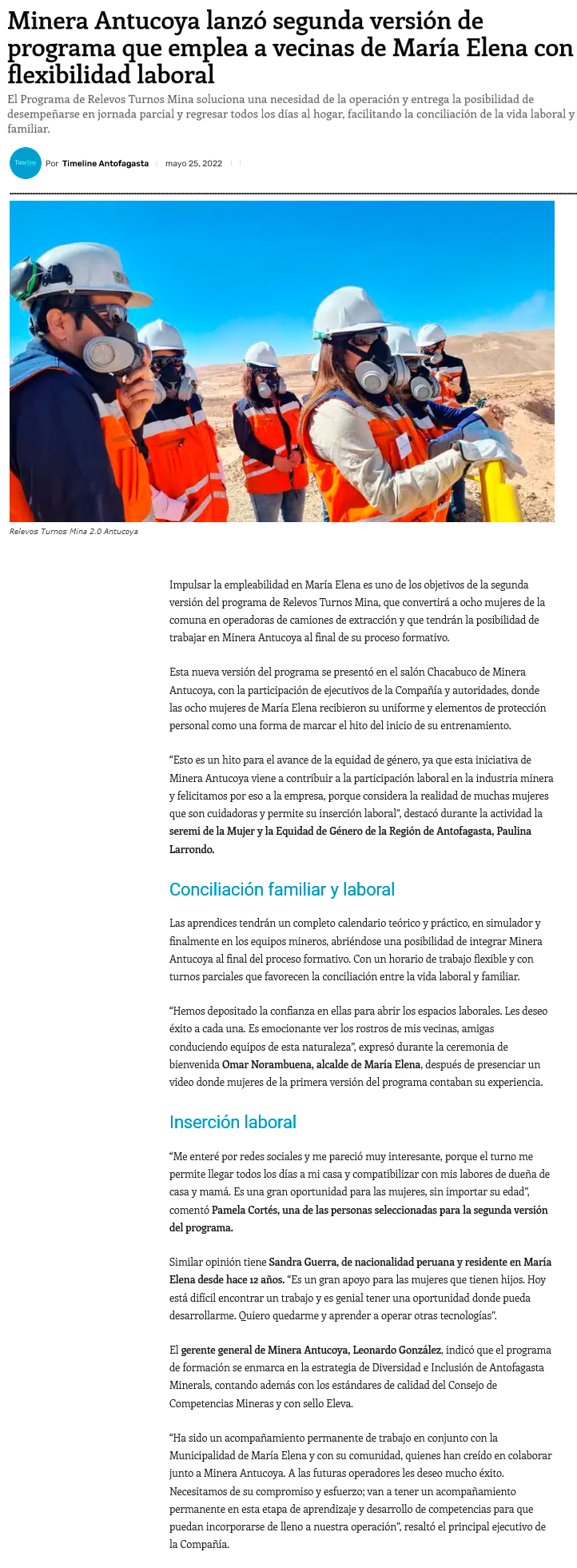 Minera Antucoya lanzó segunda versión de programa que emplea a vecinas de María Elena con flexibilidad laboral - (diarioangamos)