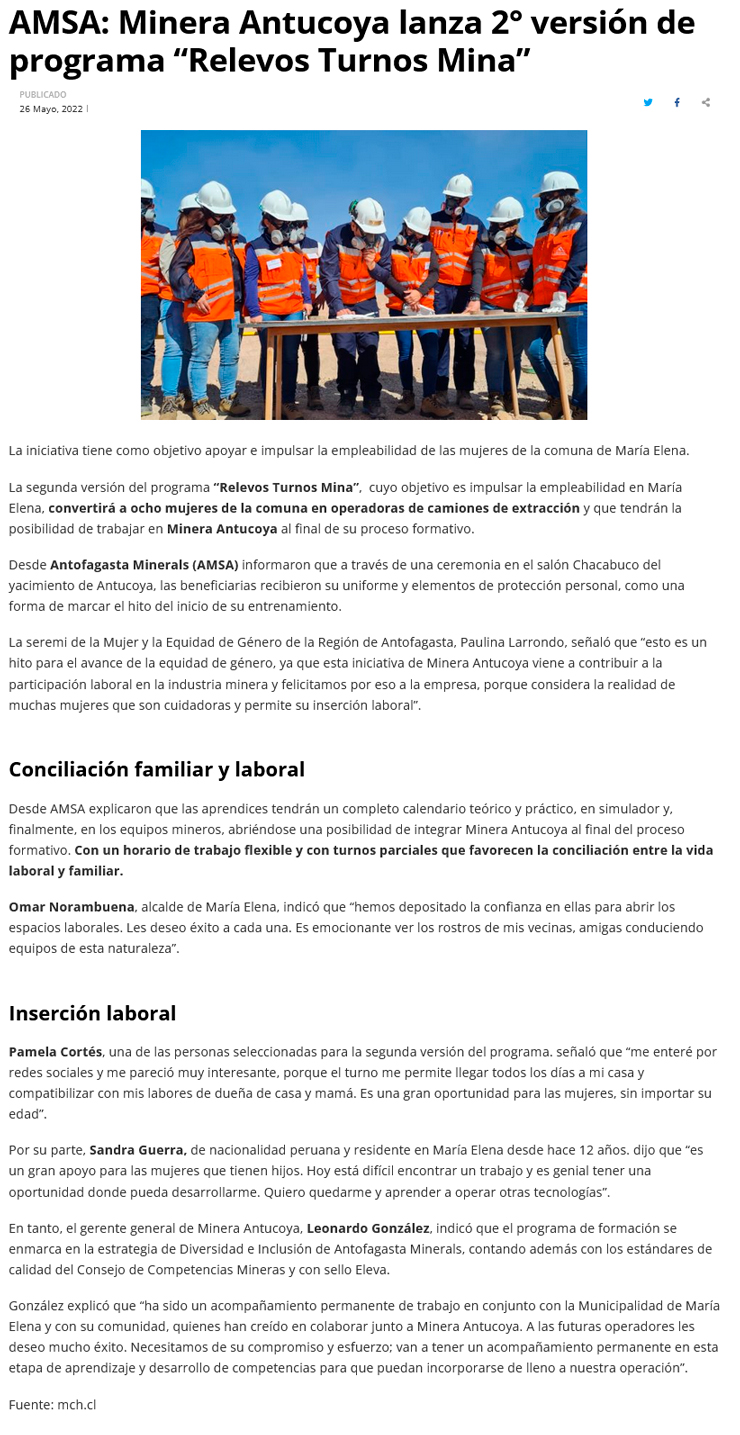 AMSA: Minera Antucoya lanza 2° versión de programa "Relevos Turnos Mina" - (Maray Online)
