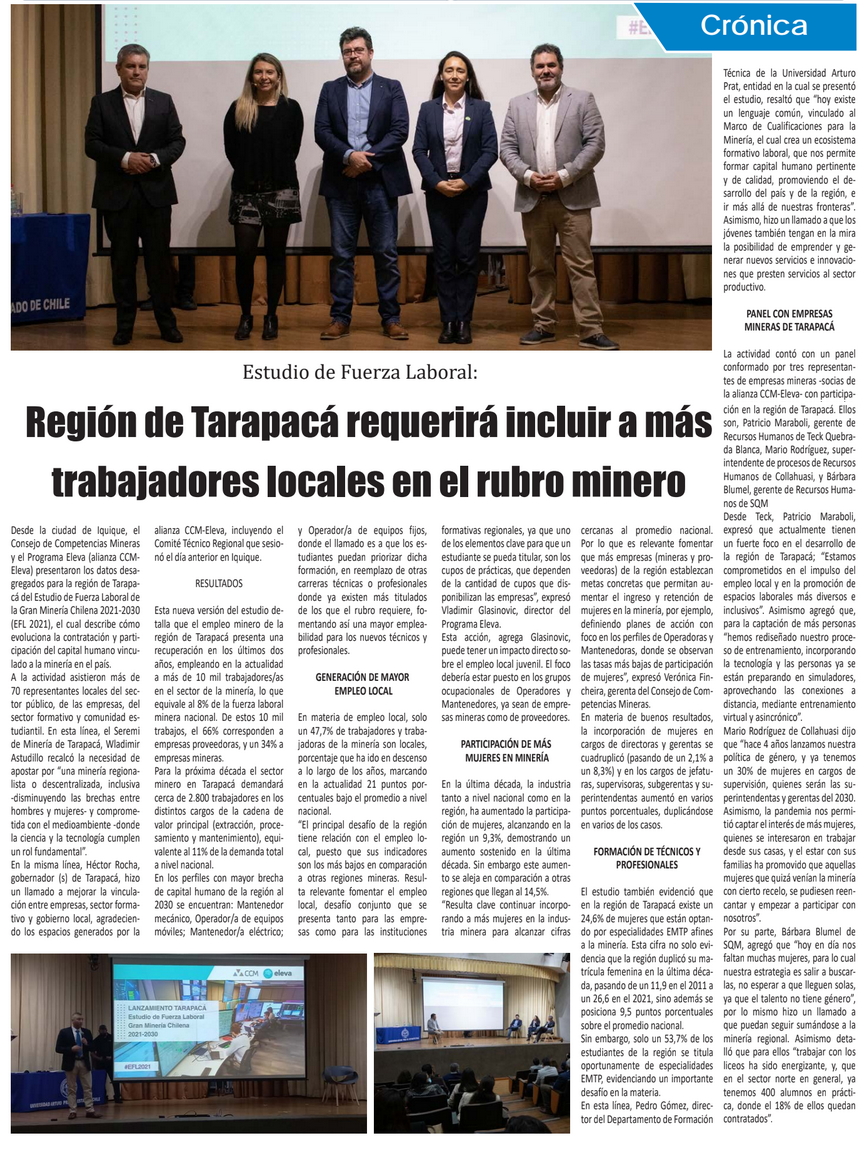 Estudio de Fuerza Laboral: Región de Tarapacá requerirá incluir a más trabajadores locales en el rubro minero - (ceinoticias.cl)