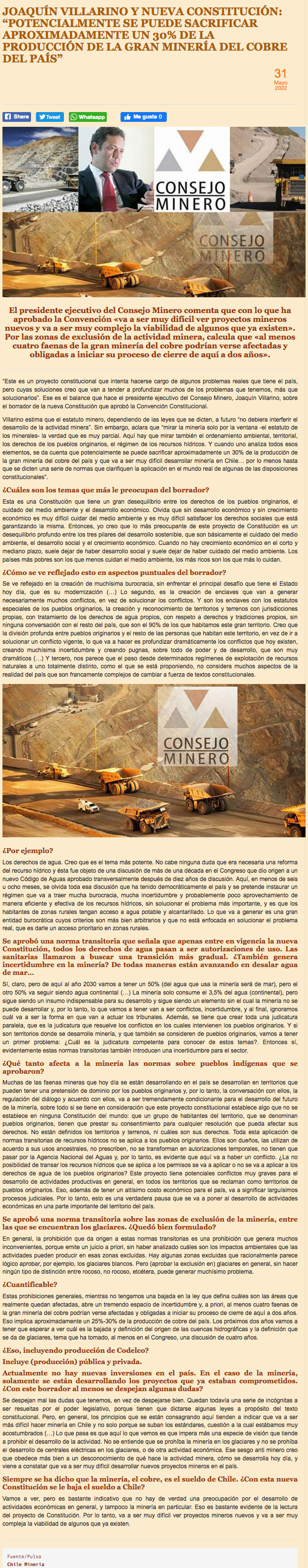 Joaquín Villarino y nueva Constitución: “Potencialmente se puede sacrificar aproximadamente un 30% de la producción de la gran minería del cobre del país” - (redimin)