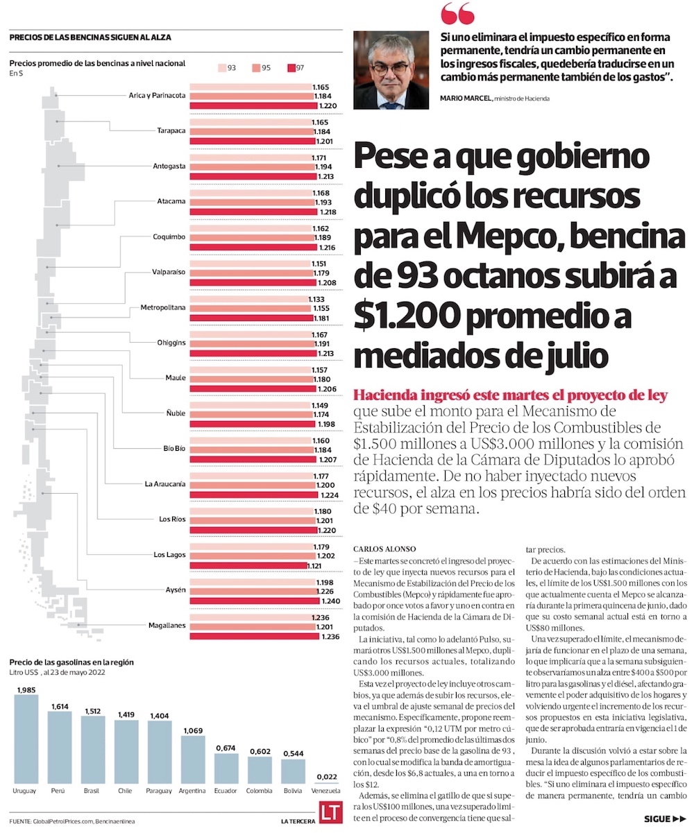 Hacienda duplica subsidios al Mepco, pero bencinas podrían subir hasta $12 por semana - (El Mercurio de Santiago)