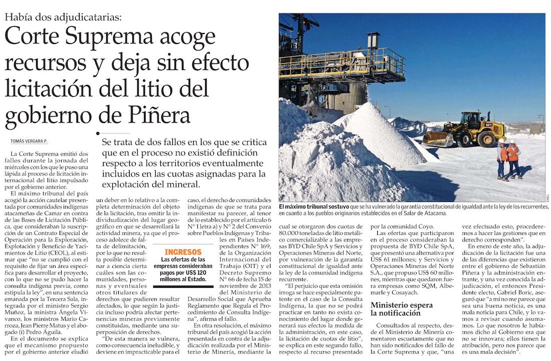 Corte Suprema acoge recursos de comunidades indígenas por litio - (Pulso)