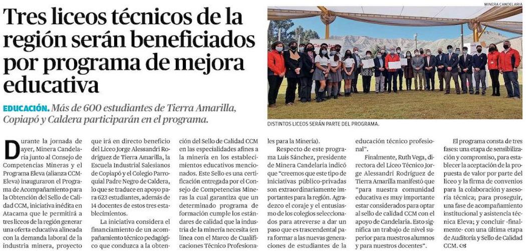 Tres liceos técnicos de la región de Atacama serán beneficiados por programa de mejora educativa - (El Chañarcillo)