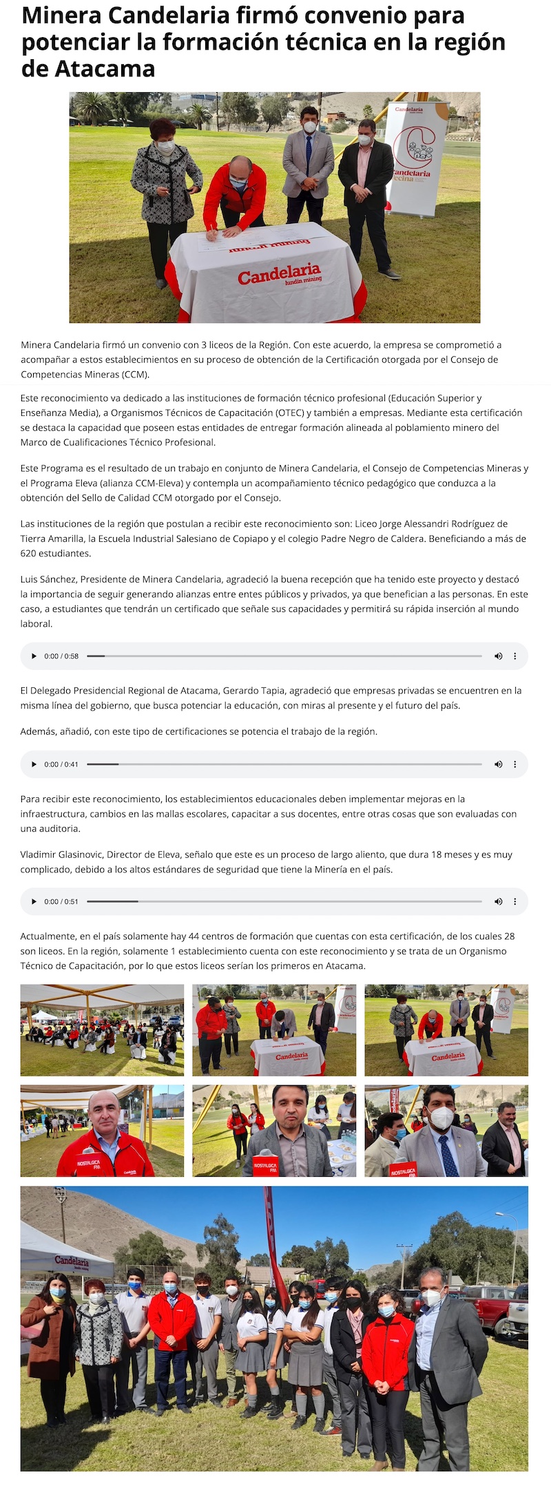 Minera Candelaria lanza programa de acompañamiento para la obtención del sello de calidad CCM - (Radio Nostálgica)