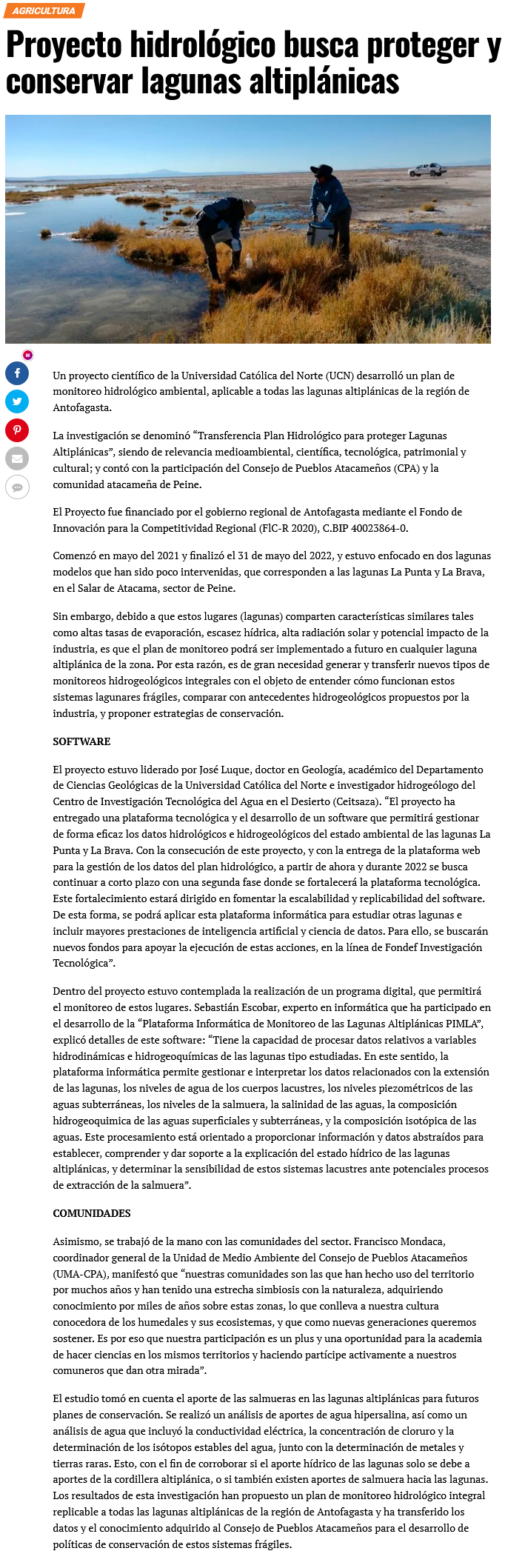 Científicos desarrollan software para proteger y conservar lagunas del altiplano - (Estrella de Antofagasta)