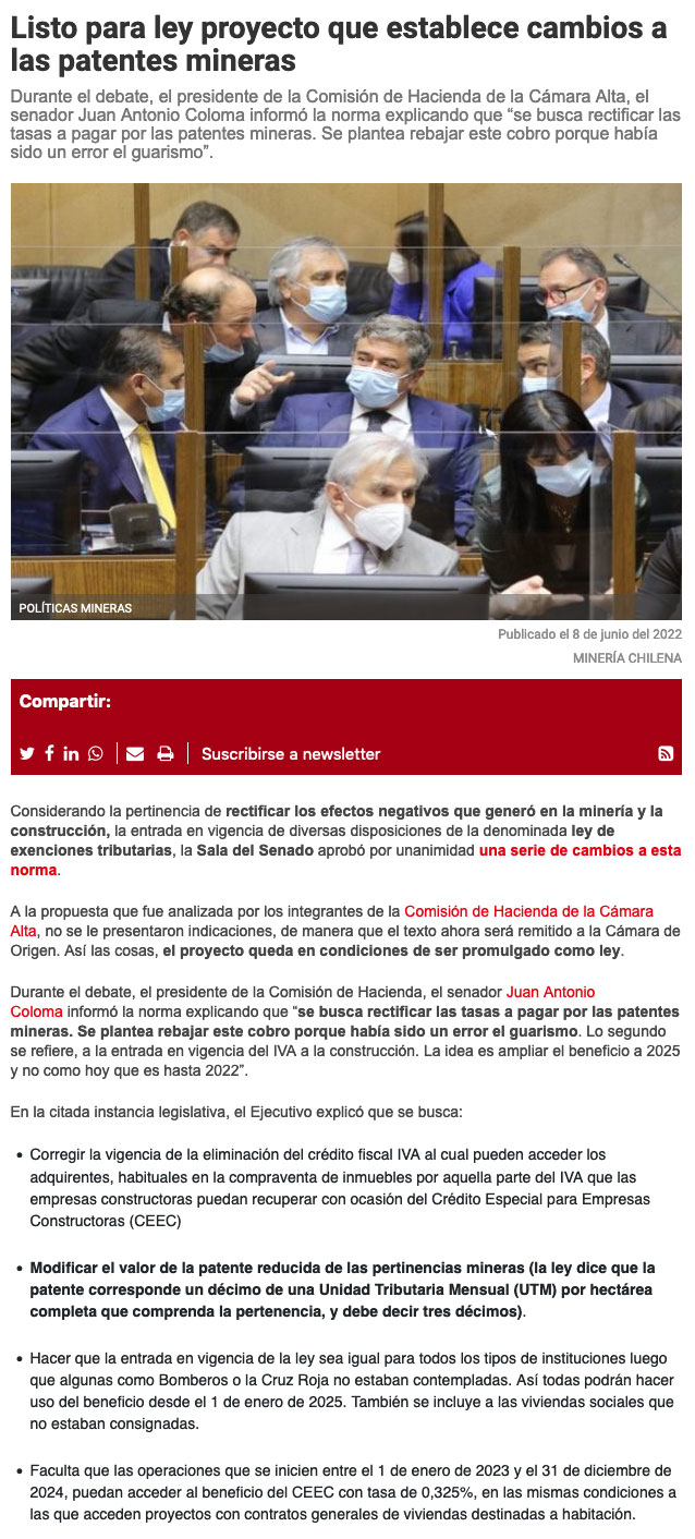 Senador Prohens solicitó a ministra de Minería postergar remate de patentes mineras - (Maray Online)