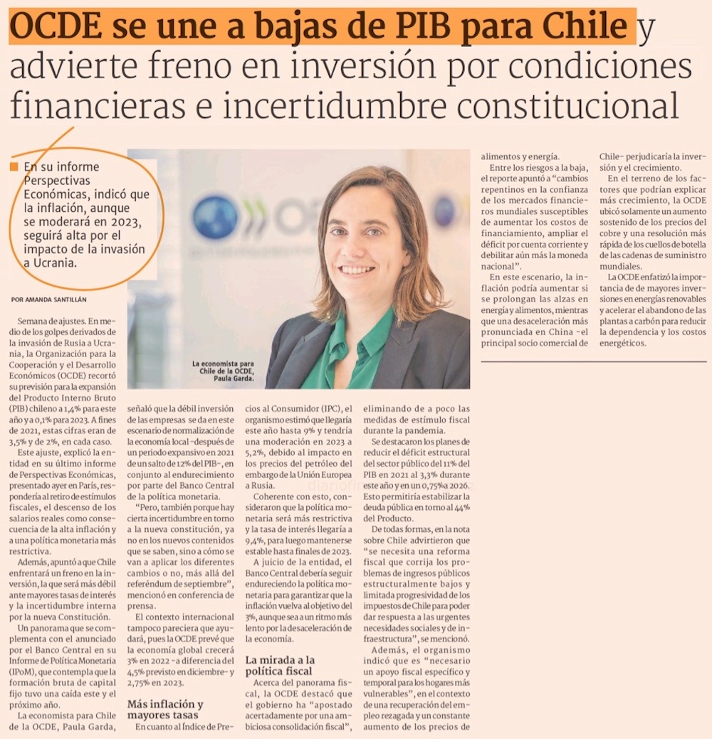 Ocde hace fuerte recorte en pronóstico de crecimiento para Chile y prevé un freno en la inversión por la incertidumbre - (Pulso)