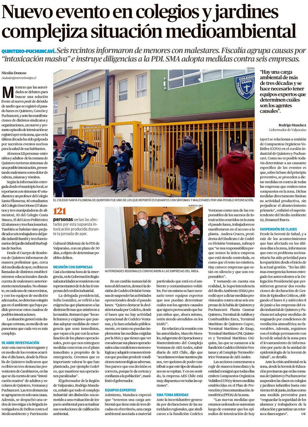 Fiscalía abre investigación por episodios de intoxicación con dióxido de azufre en Quintero Afectaron a más de 75 personas - (La Tercera)