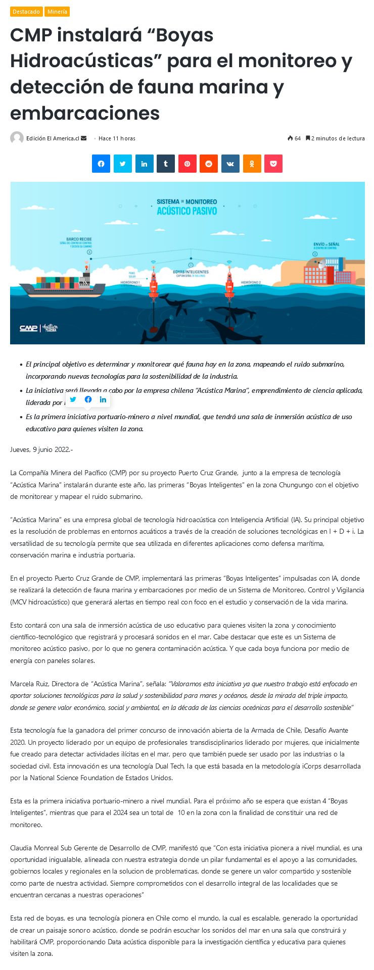 CMP instalará “Boyas Hidroacústicas” para el monitoreo y detección de fauna marina y embarcaciones - (portalminero)