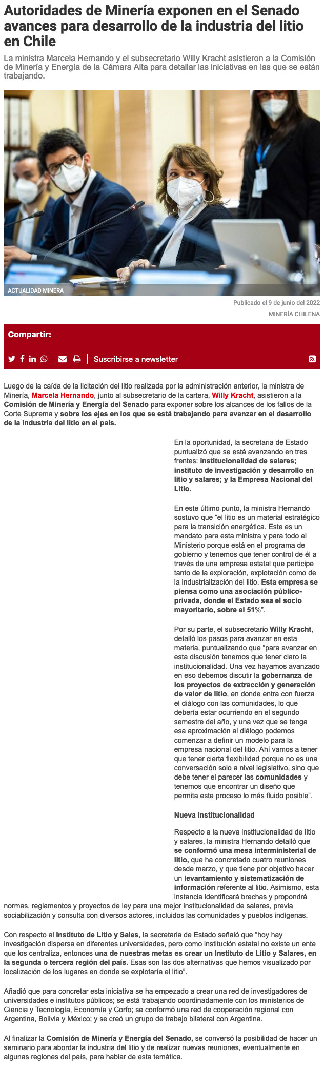 Autoridades de Minería exponen en el Senado avances para desarrollo de la industria del litio en Chile - (electromov.cl)