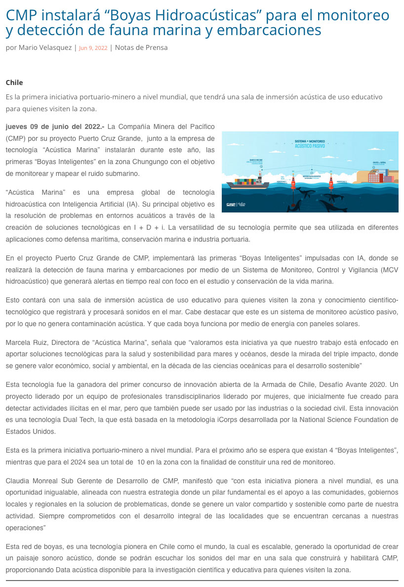 CMP instalará “Boyas Hidroacústicas” para el monitoreo y detección de fauna marina y embarcaciones - (elamerica)