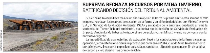 Suprema ratifica el fin de Mina Invierno - (La Segunda)