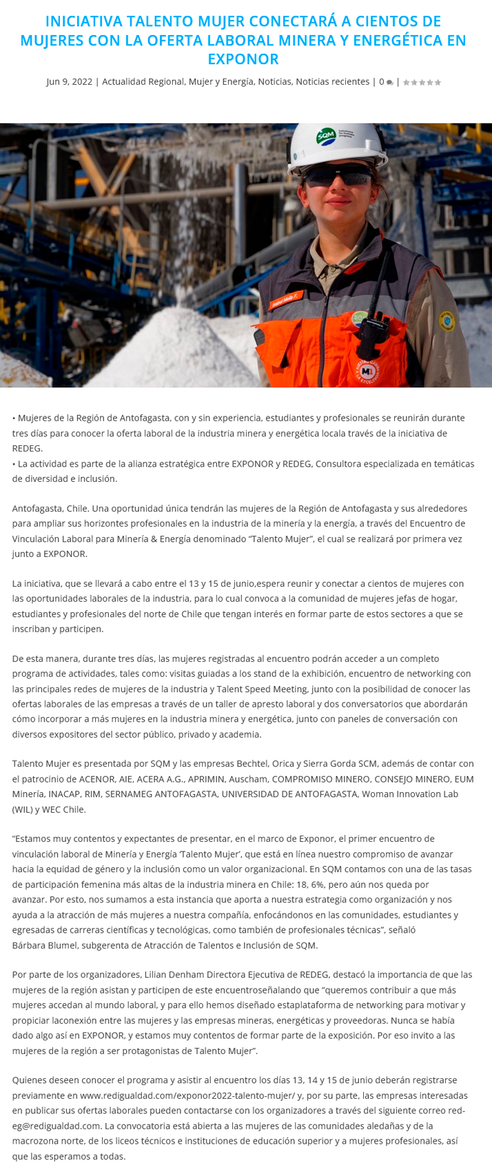 Iniciativa talento mujer conectará a cientos de mujeres con la oferta laboral minera y energética en EXPONOR - (ceinoticias.cl)