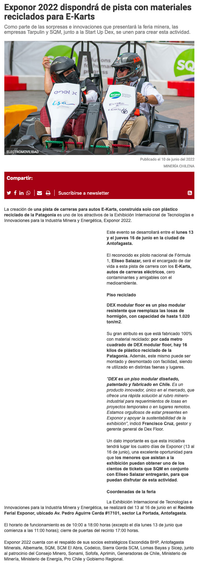 Feria minera en Antofagasta dispondrá de pista con materiales reciclados para E-Karts - (electromov.cl)